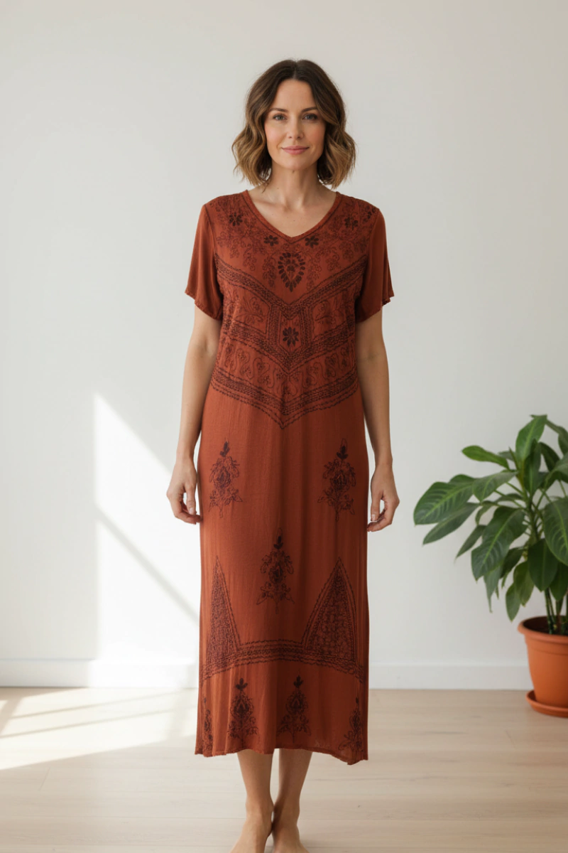 -Vestido Longo Indiano com trabalhado bordado